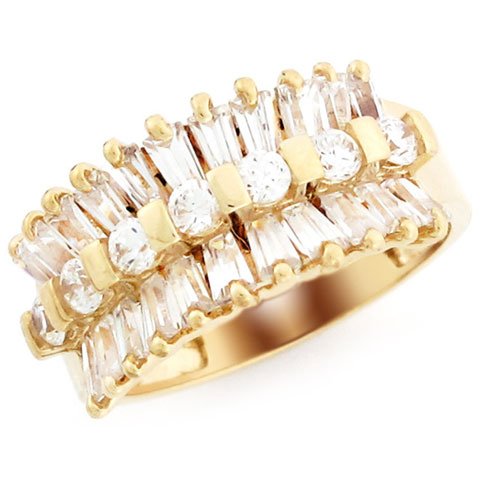 @@@ Product Details : 10k Solid Gold Baguette And Round CZ Fancy Band Ring