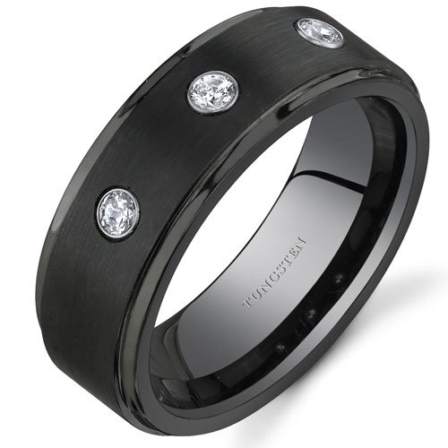 @@@ Product Details : 3 Stone 8 mm Comfort Fit Mens Black Tungsten Wedding Band Ring Size 13