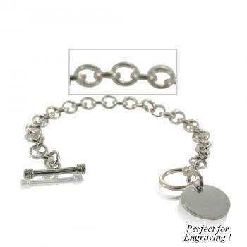Buy Now! Ladies Charm Bracelet Silver Engravable Circle Toggle