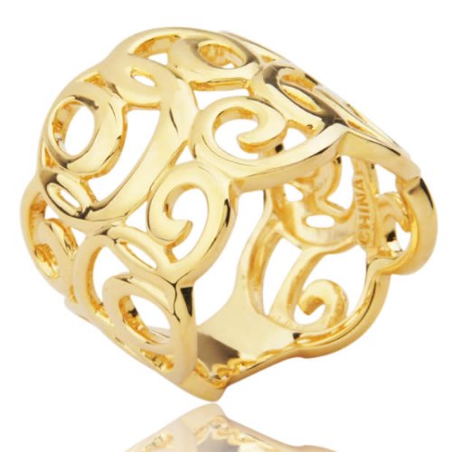 Buy Now! 18k Gold Over Sterling Silver Romantic Scrollwork Wide-Band Ring