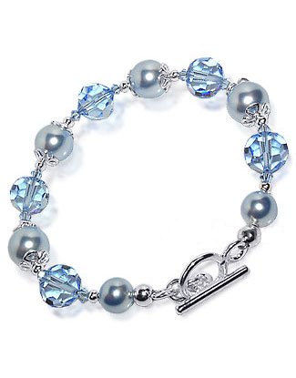 @@@ Made with Swarovski Elements® Blue Crystal & Pearl Bracelet in.925 Sterling Silver with Toggle Clasp 7.5" - - Review by Christen