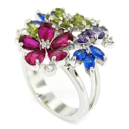 You are looking for Springtime Bouquet Cocktail Ring w/Olivine, Ruby, Blue and Lavander CZs Size 8 with save price? We have amazing deals for Springtime Bouquet Cocktail Ring w/Olivine, Ruby, Blue and Lavander CZs Size 8. It is incredibly low price now.