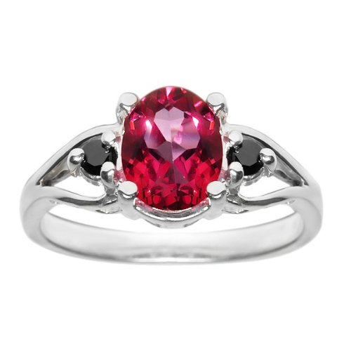 Review Best : 1.55 Ct Ruby Red Topaz & Black Diamond .925 Silver Ring